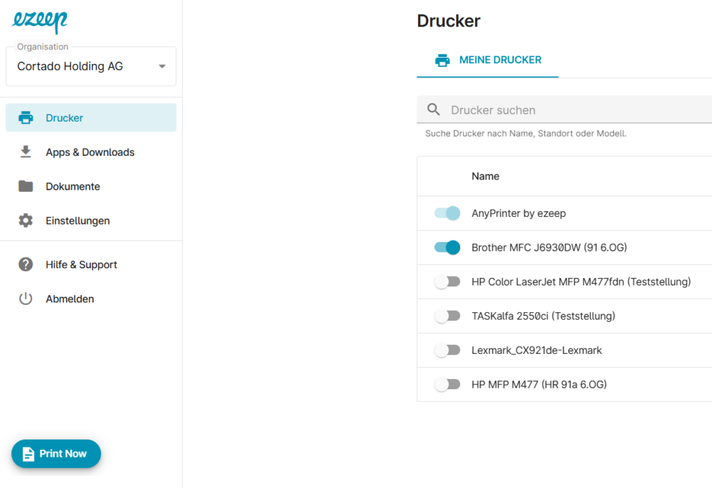 PrintNow über das ezeep-Portal